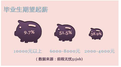 “史上更難就業(yè)年”即將悄然度過?!?014高校畢業(yè)生就業(yè)狀況》顯示,畢業(yè)生在選擇雇主時有23%的學生表示最看重的是“良好的商業(yè)品牌”,成為首要的關(guān)注因素。另外依次為“有助于個人發(fā)展的管理團隊”和“鼓勵創(chuàng)新、尊重個性的文化”。而在薪酬方面,畢業(yè)生的要求也越來越高,其中211和985重點院校中52%的畢業(yè)生生要求起薪在6000~8000元之間;38.8%的學生理想起薪在2000~4000元之間,另有將近一成的學生理想起薪在10,000元以上。面對學生越來越大的胃口,企業(yè)卻不盡能滿足。從2012年開始,校園招聘成本逐漸上升,漲幅均超過7%,而企業(yè)花在重點院校學生身上的錢則更多,高出平均21.1%。